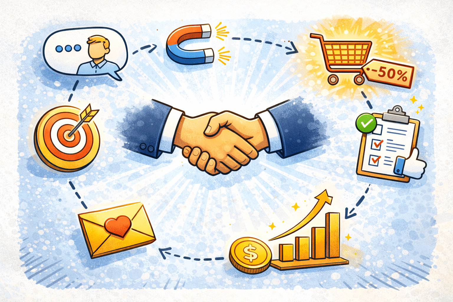 Ein Vertriebsprozess ist die strukturierte Abfolge von Schritten, die ein Unternehmen durchführt, um potenzielle Kunden zu identifizieren, zu gewinnen und langfristig zu binden.